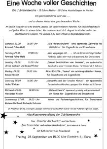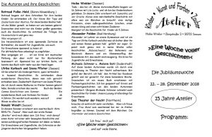 Heike Winkler vom Atelier Winkler hat Michaela und mich eingeladen, bei ihrer Jubiläumswoche aus unseren Krimis zu lesen.